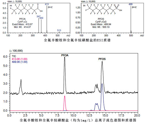最近幾年的各種研究項(xiàng)目表明,這種化合物在人體和動(dòng)物體內(nèi)積聚,且在全球環(huán)境范圍內(nèi)殘留。雖然人們對(duì)于此類化合物的生物毒性尚不能全面了解,但是它們作為一種新的持久性有機(jī)污染物而正在逐漸受到人類的重視。 本章節(jié)介紹了利用LC/MS同時(shí)分析分析典型的全氟辛酸銨和全氟辛烷磺酸鹽。