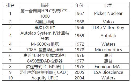 Analytical Scientist曾評出HPLC歷史上十大創新技術,分別是: