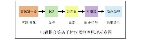 ICP-AES是以電感耦合等離子炬為激發(fā)光源的光譜分析方法,由原子發(fā)射光譜法衍生處理的新型分析技術(shù),其基本原理是利用加熱和電離反應氣的高頻電流使待測元素發(fā)出特征性的譜線,對特征譜線信號進行測量,待測樣品在等離子體激發(fā)光源作用下分解為離子和原子,并在光源中吸收能量激發(fā)發(fā)光,其儀器中的分光器將發(fā)射光分解為按波長排列的光電信號,經(jīng)檢測器對光電信號進行檢測,輸出數(shù)字信號。