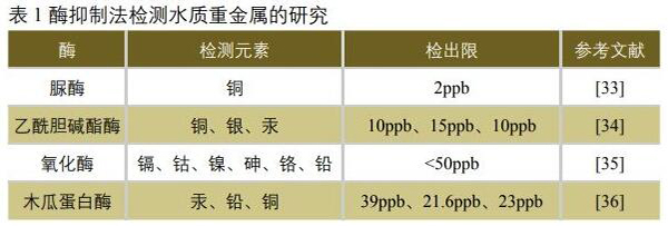 檢測水質(zhì)重金屬的原理是重金屬離子具有一定的生物毒性,疏基或甲疏基能與之結(jié)合形成酶活性中心,而酶活性中心的結(jié)構(gòu)和性質(zhì)與重金屬濃度之間能夠建立定量關(guān)系,這種關(guān)系可以通過電信號或光信號檢測到。