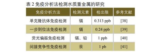 其特點是檢測速度快、操作簡便、靈敏度高、儀器易于小型化、選擇性好,可用于現(xiàn)場檢測,其不足之處在于重金屬離子單克隆抗體的制備非常困難,限制了重金屬離子的免疫分析方法的廣泛應用。
