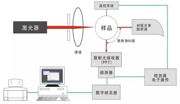 也稱光子相關光譜,是通過測量樣品散射光強度的起伏變化得出樣品的平均粒徑及粒徑分布。液體中納米粒子以布朗運動為主,其運動速度取決于粒徑、溫度和黏度系數(shù)等因素。在恒定溫度和黏度條件下, 通過光子相關譜法測定顆粒的擴散系數(shù)就可獲得顆粒的粒度分布,其適用于工業(yè)化產(chǎn)品粒徑的檢測,測量粒徑范圍為1nm-5μm的懸浮液。