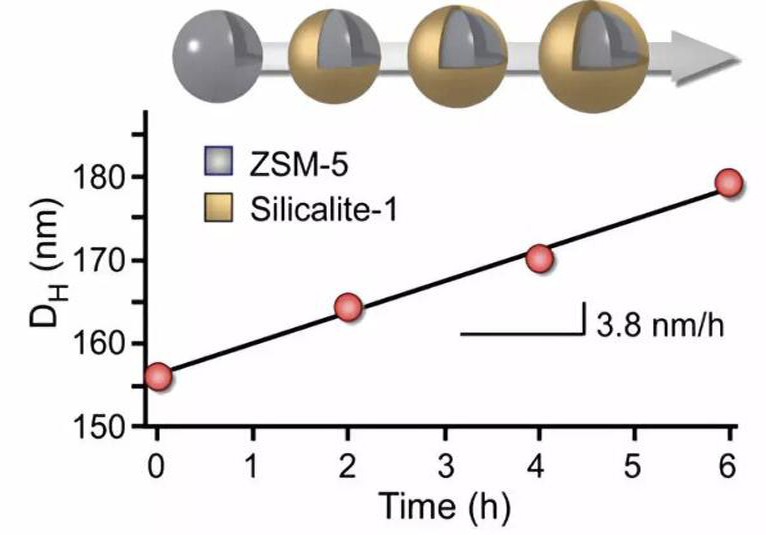 動態(tài)光散射法繪制的核殼粒徑增長速率坐標圖