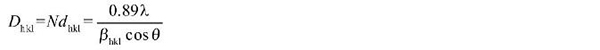 XRD測量納米材料晶粒大小的原理是當材料晶粒的尺寸為納米尺度時,其衍射峰型發(fā)生相應的寬化,通過對寬化的峰型進行測定并利用Scherrer公式計算得到不同晶面的晶粒尺寸。對于具體的晶粒而言, 衍射hkl的面間距dhkl和晶面層數(shù)N的乘積就是晶粒在垂直于此晶面方向上的粒度Dhkl。試樣中晶粒大小可采用Scherrer公式進行計算: