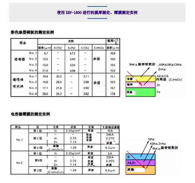 使用XRF-1800進行的膜厚測定、薄膜測定實例