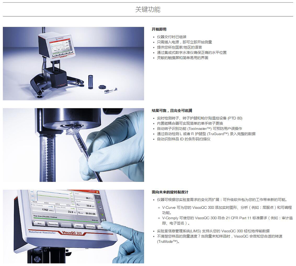 簡單靈活的特點和可靠的結(jié)果使得 ViscoQC 成為了旋轉(zhuǎn)式黏度測量的理想選擇。它可從液體到半固體的各種物質(zhì)的質(zhì)量,量程范圍精度高達(dá) ±1.0%。除了轉(zhuǎn)子磁耦合功能,自動轉(zhuǎn)子識別功能獲得可追溯、無差錯的測量結(jié)果。當(dāng)您測試未知樣品時,它甚至?xí)ㄗh合適的轉(zhuǎn)速。