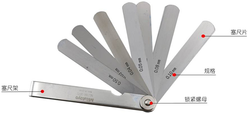 ?可拆卸螺母固定,各尺片都標有厚度,可將尺片拆下使用