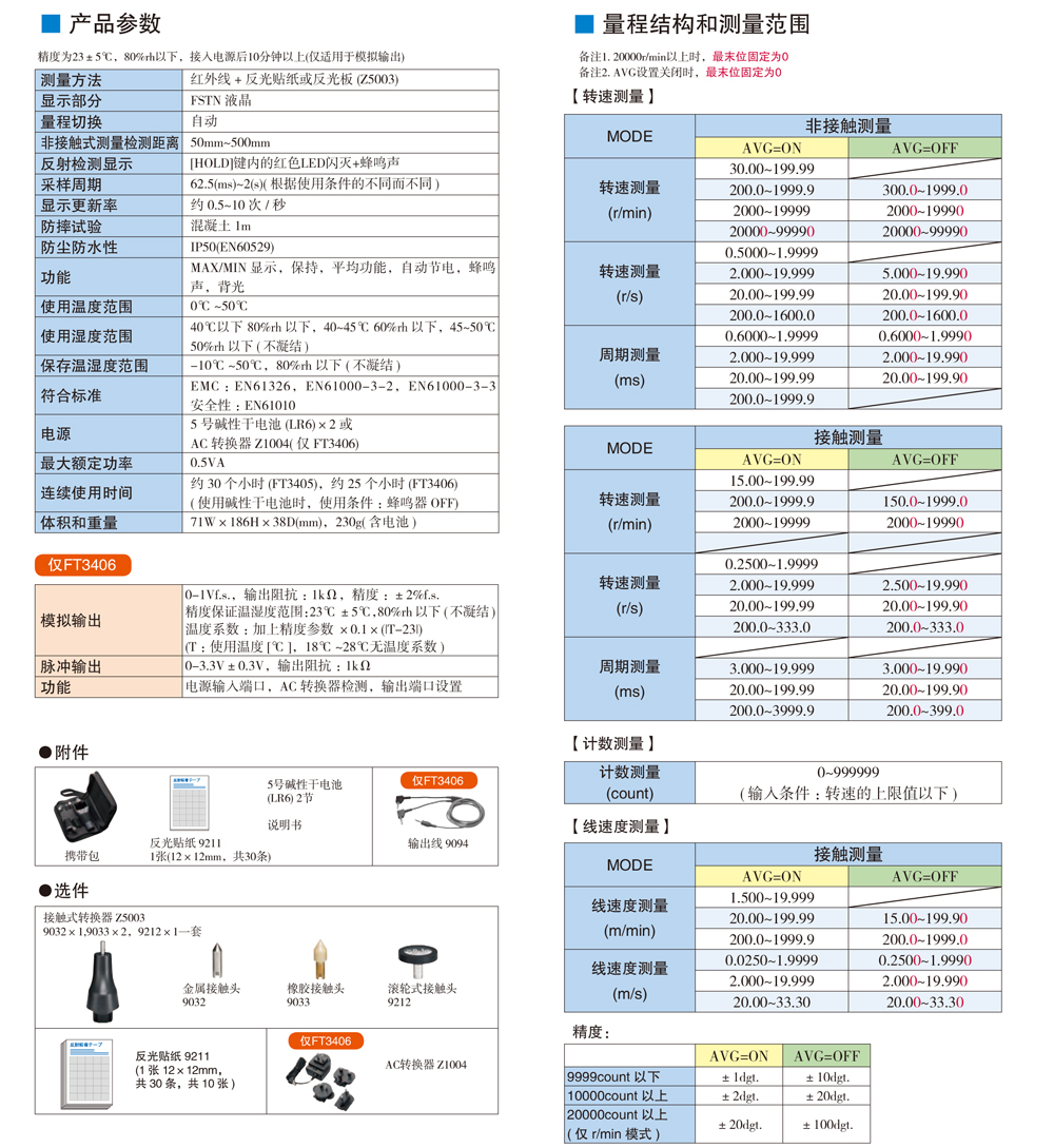 日置轉速計FT3405&FT3406